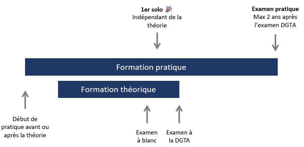 La formation pratique peut commencer avant la formation théorique. Ce choix est généralement plus pertinent, car il permet d’aborder les cours théoriques avec une meilleure compréhension concrète des concepts.